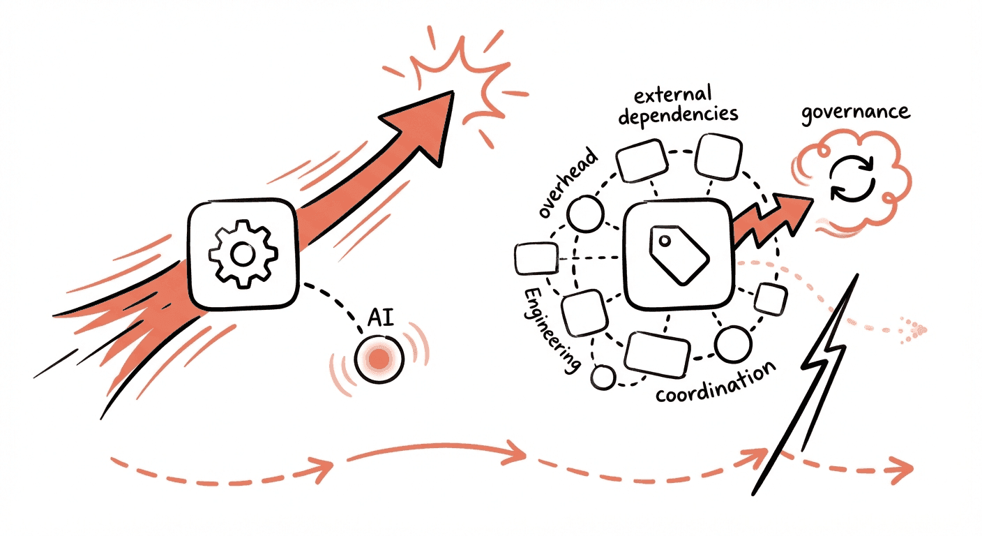 And approval bottlenecks—compliance, legal, brand—frequently land on product teams. These processes slow delivery without always improving quality. AI can draft a proposal quickly. Getting alignment and approvals is still a slow, human process.