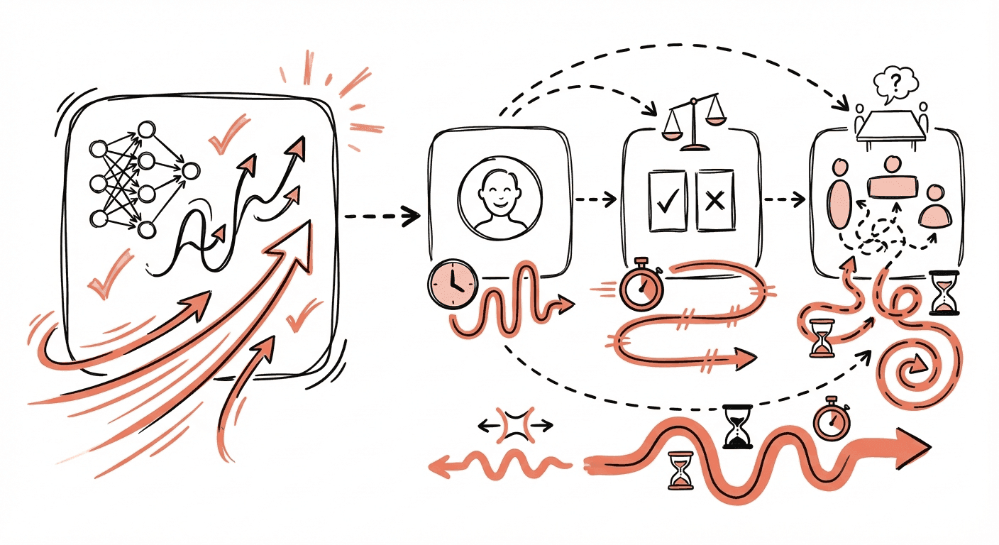 But even impressive individual gains don't translate to system-level performance unless other functions improve too. The DORA 2025 report notes a "trust paradox"—AI outputs are useful but require human verification. That bottleneck remains.